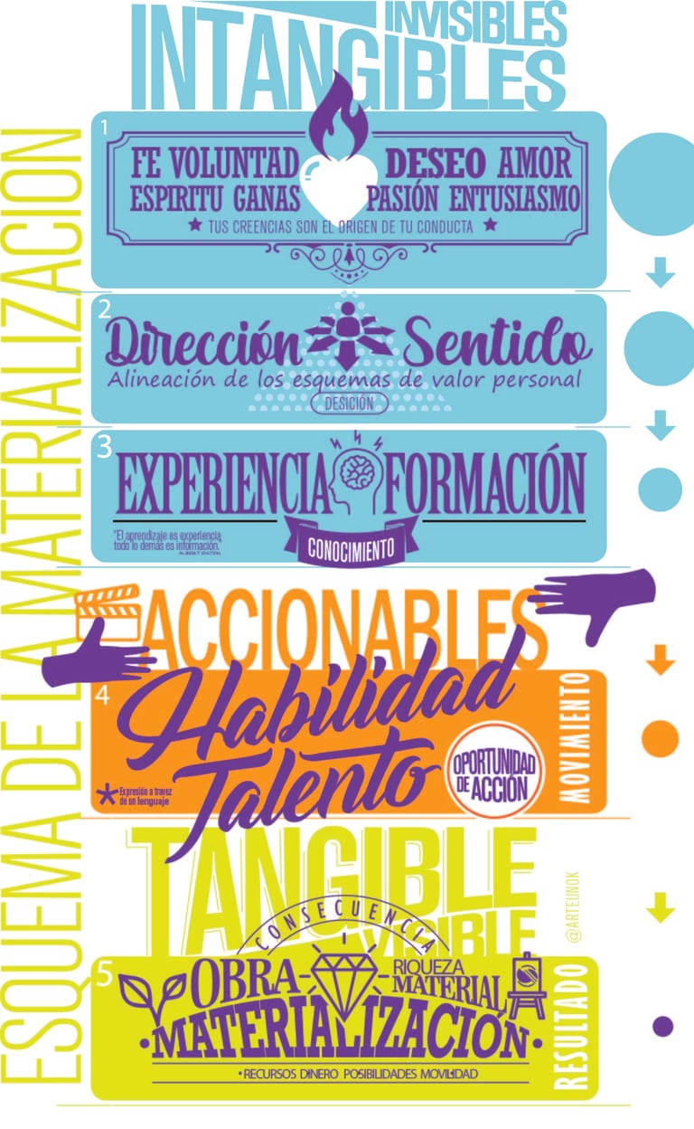 Finally, materialization occurs: the work, the outcome, the manifestation.